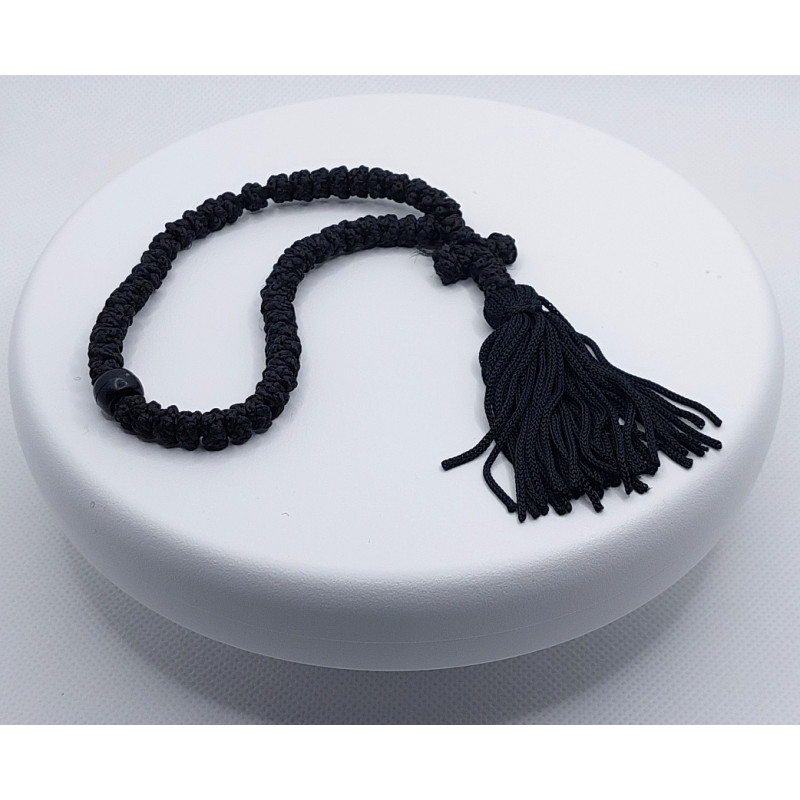 Tyto elegantní černé čotky, dlouhé 20 cm, jsou symbolem pravoslavné modlitební disciplíny a skládají se z uzlů vytvořených s pečlivou pozorností a modlitbou. Černý korálek nejenže zesiluje vizuální jednotu designu, ale také představuje pevnost a stabilitu ve víře. Tyto čotky jsou vyráběné v pokojném prostředí řeckých pravoslavných klášterů, což jim dodává autentičnost a spojení s tradičním duchovním dědictvím. Ideální pro osobní použití nebo jako dar, který odráží hloubku a krásu pravoslavného života.
