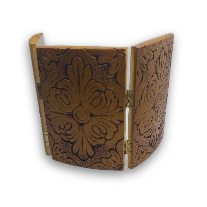 Tento působivý triptych Deisis je vzácným příkladem řeckého ikonopisného umění. Celkový rozměr 14 x 29 cm, tento triptych spojuje ikony Žehnajícího Krista ve středu, Panny Marie po levé a Sv. Jana Křtitele po pravé straně. Je dokonale vyroben na zadní straně dřevěného podkladu s křížovým designem, který umocňuje jeho duchovní a estetickou hodnotu. Každá ikona je detailně zpracovaná a společně tvoří harmonický celek, který je ideální pro modlitební praxi nebo jako centrální prvek duchovního prostoru.