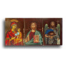 Tento posvátný byzantský triptych představuje tři pilíře křesťanské víry – Krista Pantokratora, Pannu Marii s Dítětem a svatého Jana Křtitele. Vytvořen v duchu východní ikonografické tradice, tištěný na dřevě se zlatým pozadím, je triptych určen k modlitbě, usebrání a duchovnímu spočinutí v přítomnosti Boží.