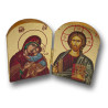 Tento krásný diptych spojuje dvě nejhlubší podoby Boží blízkosti – Pannu Marii Glykofilousa, tedy „Sladce líbající“, a Krista Pantokratora, „Vládce všeho“. Obě poloviny jsou pevně spojeny kovovým pantem a tvoří kompaktní modlitební ikonu o velikosti 10 × 7 cm, kterou lze snadno otevřít i přenášet.