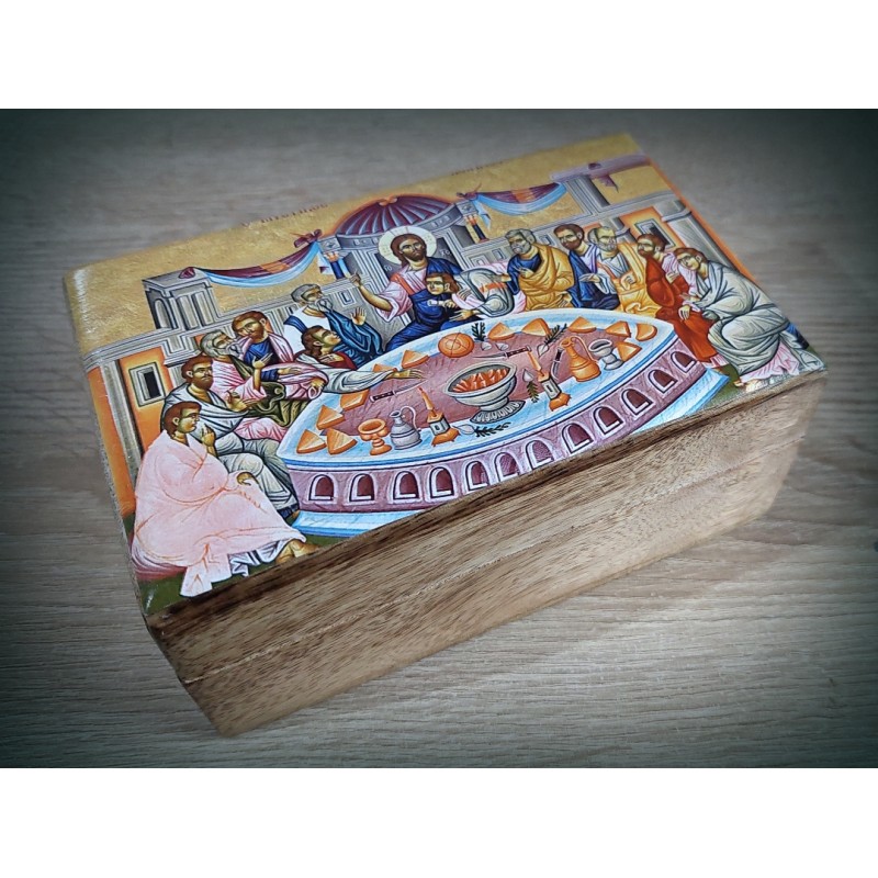 Dřevěná krabička s ikonou Poslední večeře Páně vhodná pro úschovu například růžence, kadidla, šperků, atd ...