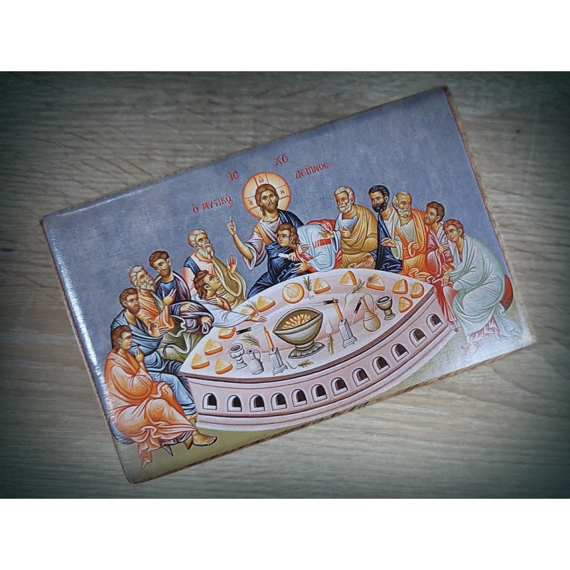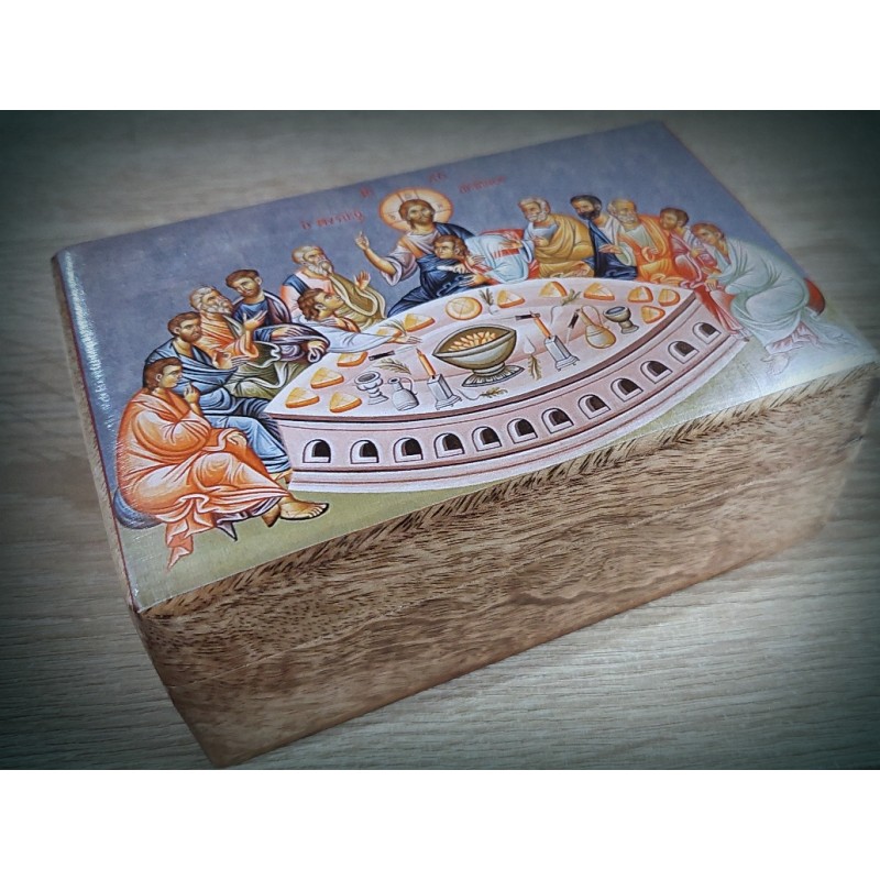 Dřevěná krabička s ikonou Poslední večeře Krista vhodná pro úschovu například růžence, kadidla, šperků, atd ...