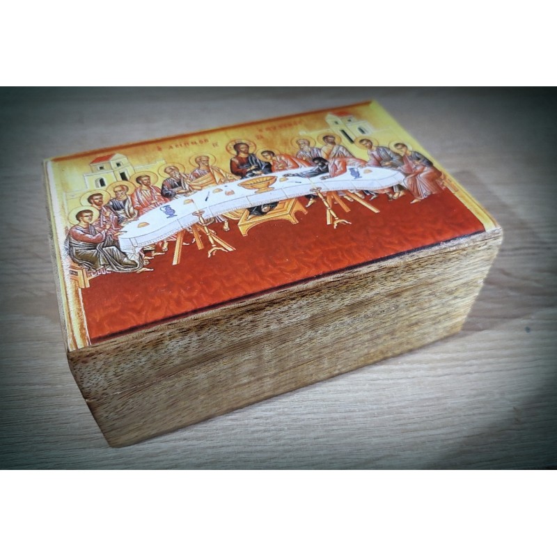 Dřevěná krabička s ikonou Poslední večeře Páně vhodná pro úschovu například růžence, kadidla, šperků, atd ...