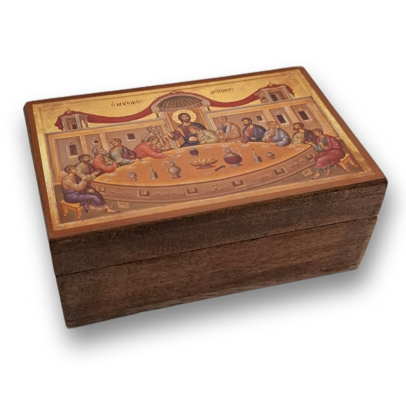 Dřevěná krabička s ikonou Poslední večeře Páně vhodná pro úschovu například růžence, kadidla, šperků, atd ...