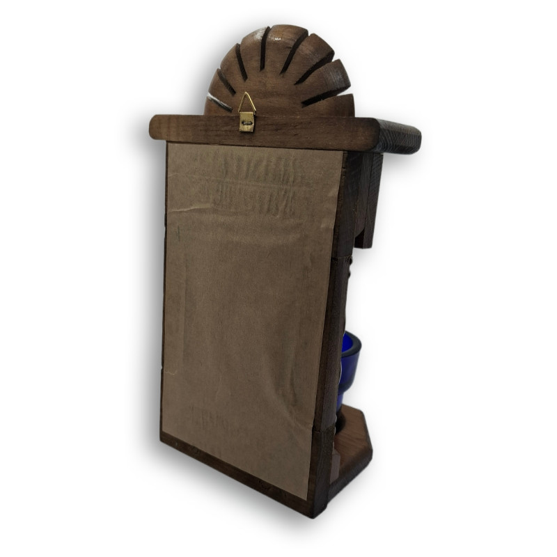 Na zadní straně se nachází kovové očko pro snadné zavěšení – ikonostas tak může najít své místo v každém domácím modlitebním koutku, pracovně, ložnici či obývacím pokoji. Je to prostor, kam se člověk může vracet, aby znovu nalezl klid, modlitbu a duchovní rovnováhu.