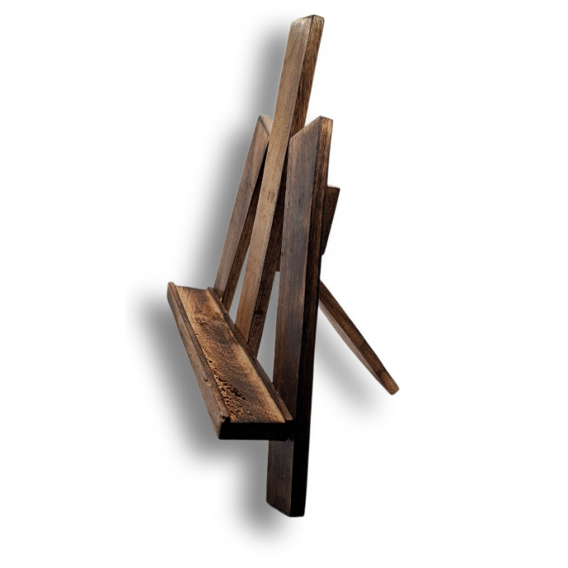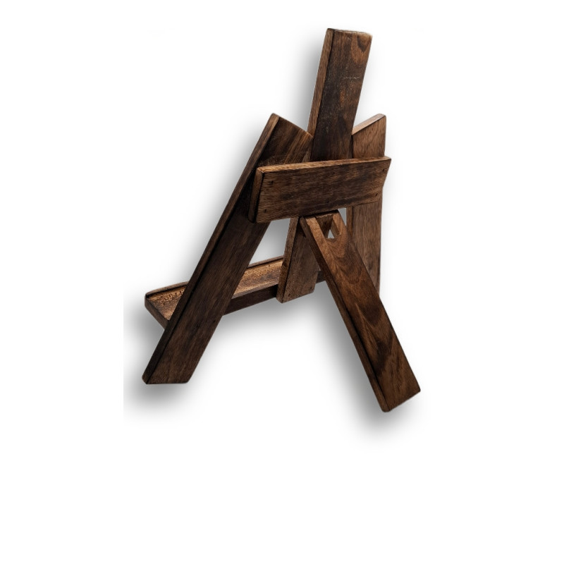 Stojánek je vyroben z masivního dřeva, který mu dodává starobylý vzhled. Jeho konstrukce je pevná a stabilní, přesně přizpůsobená tomu, aby udržela ikony různých velikostí v mírném náklonu – ideálním pro modlitbu, rozjímání a vnímání posvátného obrazu.