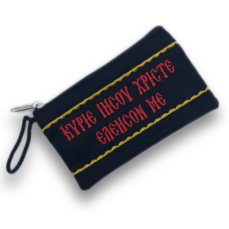 Noste sebou každodenní připomínku vaší víry s touto stylovou a praktickou taštičkou. Vhodná na doklady a kreditní karty, tato taštička je ideálním společníkem pro každodenní použití. Vyrobena z odolného materiálu a opatřena zlatou výšivkou modlitby "Κύριε Ιησοῦ Χριστέ, ἐλέησόν με" (Pane Ježíši Kriste, smiluj se nade mnou), je to nejen praktický, ale i duchovně obohacující doplněk. Tato taštička je připomínkou neustálého hledání milosti a soucitu v našich životech, zatímco poskytuje bezpečné a snadno přístupné místo pro vaše cennosti.