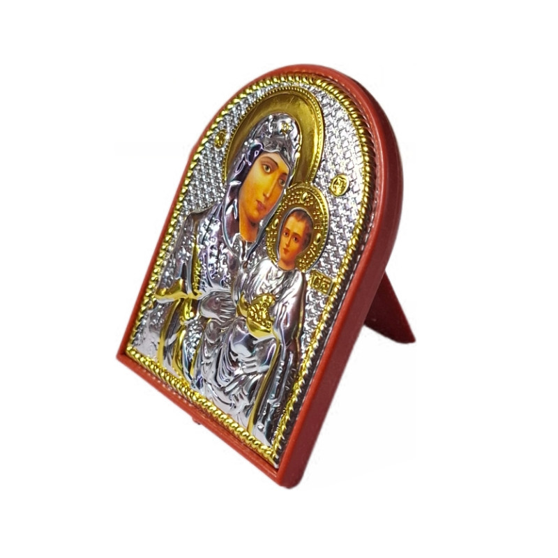 Malá stolní ikona zobrazující Pannu Marii Jeruzalémskou s malým Ježíšem, uctívanou jako mocnou přímluvkyni a ochránkyni. Tento obraz, spojený se Svatou zemí, připomíná Mariinu lásku, mateřskou péči a ukazuje na Krista jako pramen spásy a světla.