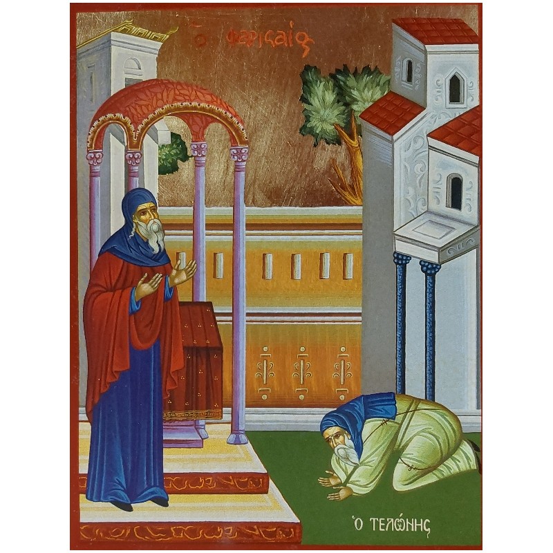 Na ikoně je zobrazeno podobenství o celníkovi a farizejovi. Farizeus ve své domnělé spravedlnosti děkuje Bohu, že není jako onen hříšný celník modlící se vedle něho. Celník se naopak neodváží ve své pokoře pohlédnout k nebi a provolává ve svém srdci "nejsem hoden". Celník odchází ospravedlněn.
