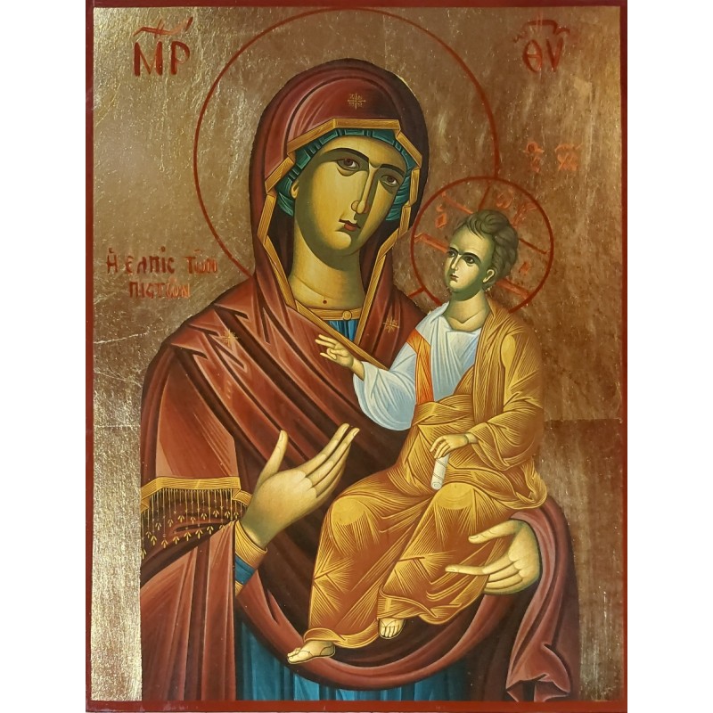 Originál vytvořila sestra Kipriany z Řecka. Jedná se o athoskou ikonu. Panna Maria je nadějí v beznadějném světě. Na její přímluvy se lidé obracejí ke Kristu, uzdravují se a zjednává klid v manželství.