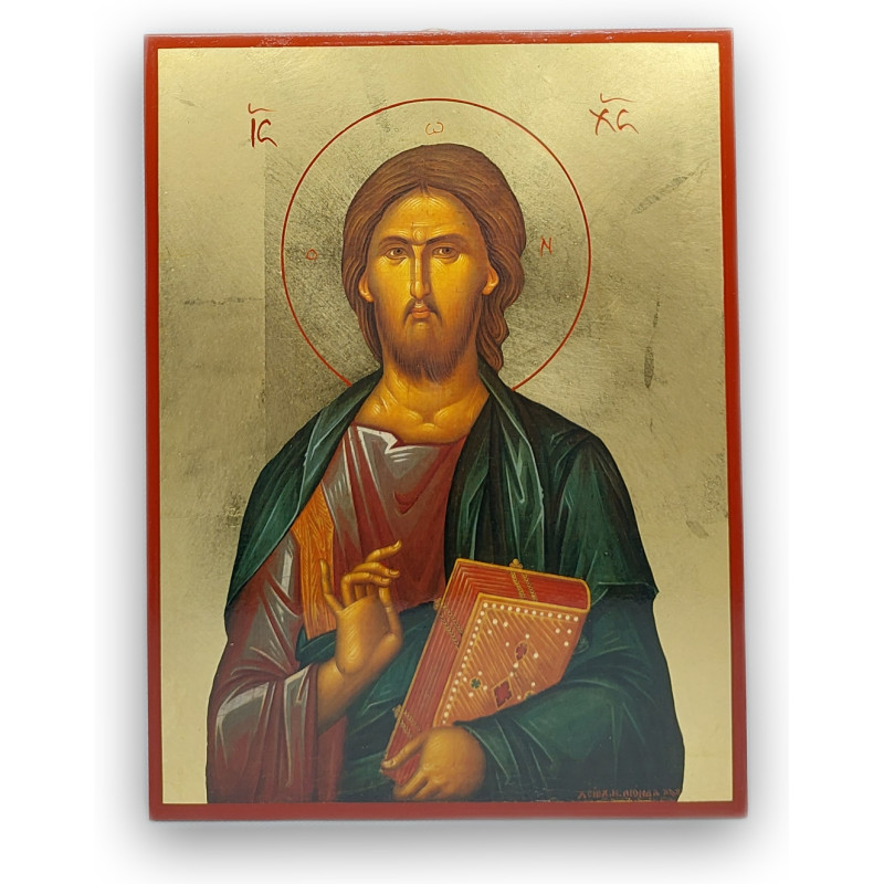 Tato pečlivě zpracovaná reprodukce byzantské ikony "Kristus Požehnání" zachycuje umění a duchovnost originálního díla hagiografa Liondase Chr. z Řecka. Kristus je vyobrazen v typické geste požehnání, jemně držící svitky evangelia, což představuje jeho nekonečnou moudrost a lásku k lidstvu. Přestože jde o reprodukci, každý detail byl zachován s úctou k originálu, což z tohoto kusu činí dostupnější, avšak stále duchovně významné umělecké dílo. Ikona je vytištěna na dřevěné desce s pozlaceným pozadím, které dodává obrazu autentický byzantský vzhled. S rozměrem 25x19 cm se hodí jako dekorace do domova, kostela nebo jako inspirativní dárek pro milovníky náboženského umění a ikonografie.