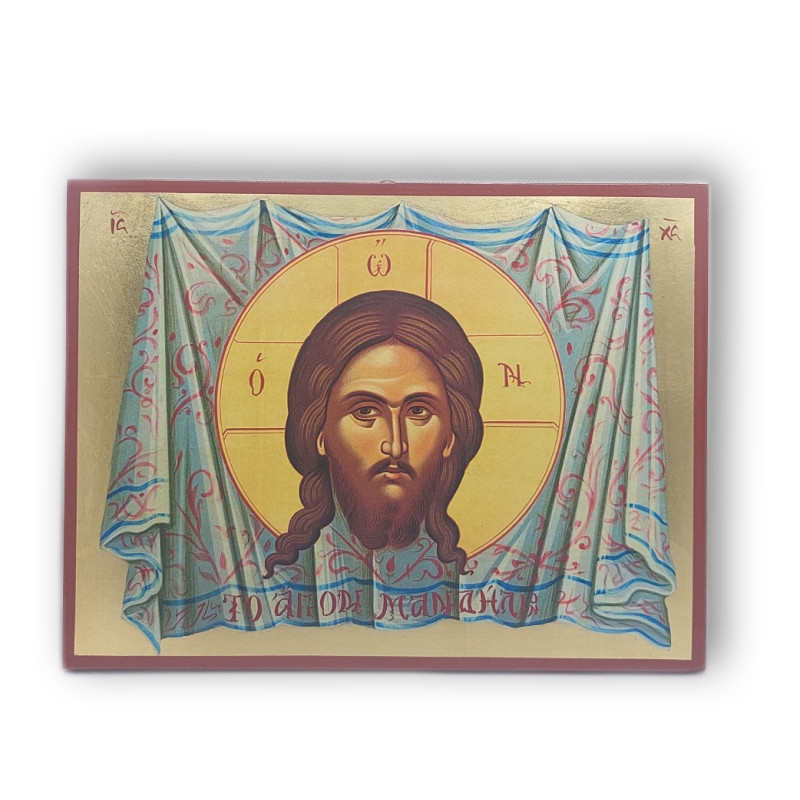 Tato ikona je zobrazováním Otisku tváře Pána Ježíše, což je jedno z nejuctívanějších zobrazení v křesťanství. Vyrobená v Řecku, ikona na pozlaceném dřevěném podkladu s rozměry 25x19 cm ztělesňuje vznešenost a duchovní sílu Kristova obličeje. Pozlacený podklad dodává obrazu posvátný lesk, a s ouškem na pověšení je ikona snadno instalovatelná a stane se středem pozornosti v jakémkoliv prostoru, poskytující zdroj meditace a duchovní reflexe.