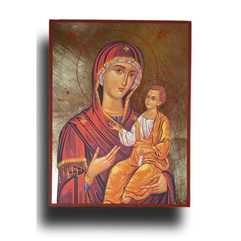 Ikona Panny Marie Portaitissy, známá jako "Strážkyně brány", zachycuje příběh ikony, která byla zachráněna a vržena do moře, aby unikla ničení během období ikonoklasmu. Později se zázračně objevila u kláštera Iviron na hoře Athos. Tato ikona je ručně vyrobená na dřevěném podkladu s rozměry 25x19 cm a zdobena pozlacením, což zdůrazňuje její posvátnost.