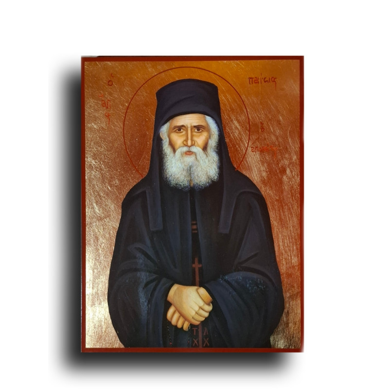 Tato ikona zobrazuje svatého Paisia Svatohorského, jednoho z nejuctívanějších starců 20. století, který byl mnich, duchovní otec, divotvůrce a prorok naší doby. Jeho hluboká pokora, láska k lidem a dar rozlišování učinily z jeho života světlo, které dodnes svítí milionům lidí.