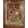 Tato vznešená reprodukce je zhotovena na masivní dřevěné desce. Klíčovým prvkem je kovčeg (tradiční vyřezávaný rám) s hloubkou 5 mm, který vytváří posvátné prohlubně (okno), skrze něž věřící nahlíží do duchovní reality. Červené a modré roucho Krista na ikoně symbolizuje Jeho dvě přirozenosti – božskou a lidskou.