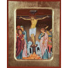 Tato hluboce symbolická ikona, vytvořená v Řecku, zachycuje vrcholnou oběť našeho Pána Ježíše Krista na kříži. Nad Kristovou hlavou čteme nápis „Král slávy“, což připomíná, že kříž není pro věřícího místem porážky, ale trůnem, z něhož Bůh začal kralovat nad světem. Po stranách stojí přesvatá Bohorodice a svatý Jan Teolog, tiší svědkové lásky, která se vydala za život světa.