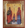 Popis a zpracování: Tato vysoce kvalitní reprodukce je vyrobena v řeckých ikonopiseckých dílnách, které ctí staletou tradici byzantského umění. Ikona je vyvedena na dřevěném podkladu se zlatým pozadím, které v pravoslavné ikonografii symbolizuje nestvořené Boží světlo a Boží přítomnost (Slávu). Charakteristickým prvkem je tzv. „kovčeg“ – vyřezávaný rám s prohlubní, který vytváří posvátný prostor a zdůrazňuje hloubku zobrazeného výjevu.