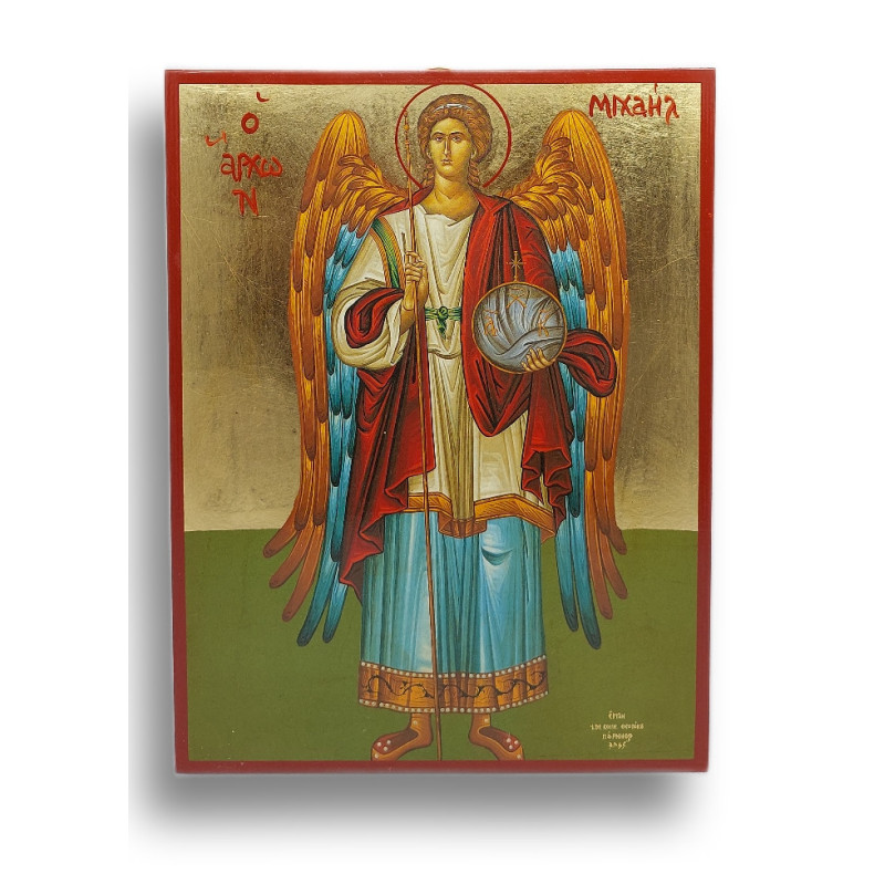 Na ikoně je archanděl Michael, kníže Boží, držící v ruce svět.