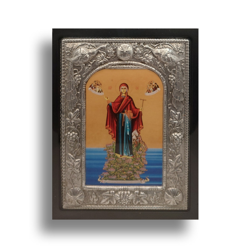 Pozoruhodná ikona Panny Marie Athoské, známé jako "Bezpečný přístav", je mistrovským dílem vyrobeným v Řecku, kde byzantské umělecké tradice žijí dodnes. Kovový obraz svaté je vytvořený dle starobylého byzantského postupu a pečlivě osazen na dřevěný podklad MDF o rozměrech 24x19 cm. Tento posvátný předmět, symbolizující ochranu Panny Marie, je navíc vybaven dírkou pro snadné zavěšení na zeď, což umožňuje jeho hrdé vystavení jakožto centrálního duchovního elementu v domácnosti nebo modlitebním prostoru.