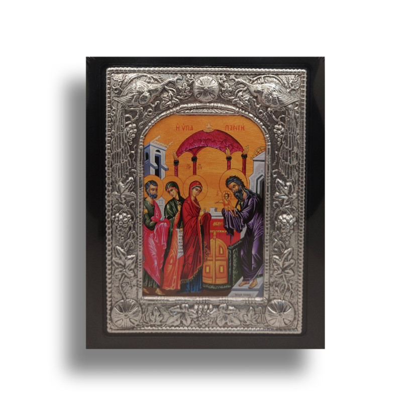 Představujeme vám znamenitou ikonu "Uvedení Ježíše do chrámu", vytvořenou ve Řecku podle starobylých byzantských metod. Tato ikona o rozměrech 24x19 cm znázorňuje posvátný výjev s Pannou Marií, Svatým Josefem a prorokem Simeonem. Každý detail této díry na pověšení připravené ikony je pečlivě zvýrazněn na speciálním kovu, který je umístěn na robustním dřevěném podkladu MDF.