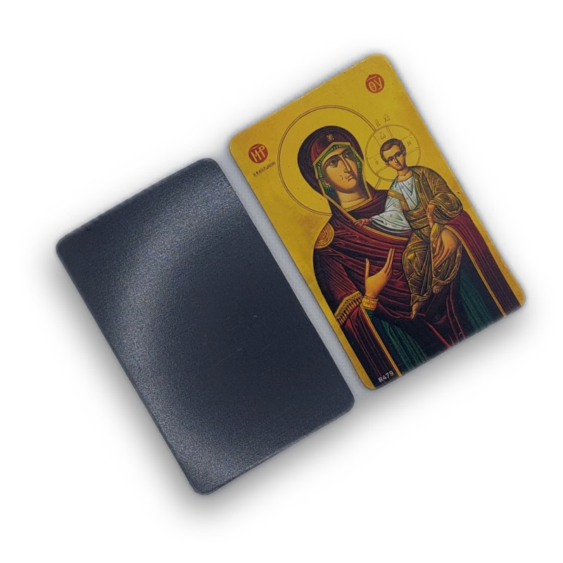 Tato magnetka zobrazuje ikonu Panny Marie Hodegetrie, což je tradiční zobrazení, kde Panna Marie ukazuje na Ježíše jako na cestu (hodēgos) k spáse. Ikona je obvykle spojována s ochranou a vedením věřících. Tento typ ikonografie je velmi vážený v pravoslavné církvi a často se nachází v kostelech a domácnostech věřících. Magnetka spojuje tento hluboký duchovní význam s praktičností a je vyráběna v Řecku, což zdůrazňuje její autentickou spojitost s pravoslavnou kulturou.