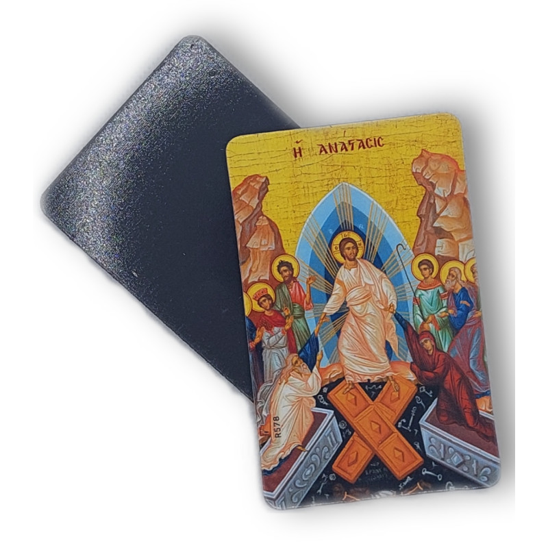 Ikona znázorňující Kristův sestup do podsvětí, známá jako Anastasis, je významným obrazem v křesťanství. Představuje moment, kdy Kristus po své smrti na kříži sestoupil do podsvětí, aby osvobodil duše spravedlivých. Tato ikona, často viděná během Velikonočních svátků, představuje naději a vzkříšení. Magnetka o rozměrech 8,5 x 5 cm je vyrobena v Řecku, což je zemi s bohatou tradicí pravoslavných ikon.