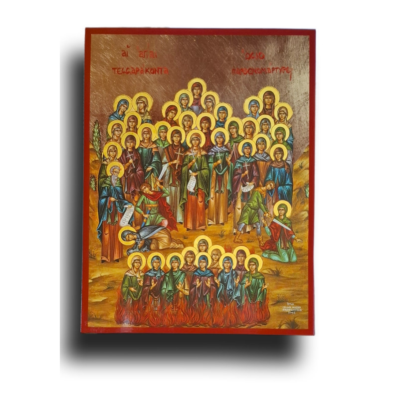 Tato silná byzantská ikona zobrazuje čtyřicet mladých žen – svaté panny-mučednice, které obětovaly svůj život Kristu v dobách krutého pronásledování křesťanů. Byly zasvěcené čistotě, modlitbě a službě Bohu. Když byly vyzvány, aby se zřekly Krista a obětovaly modlám, všechny odpověděly stejně: raději smrt než zrada víry.