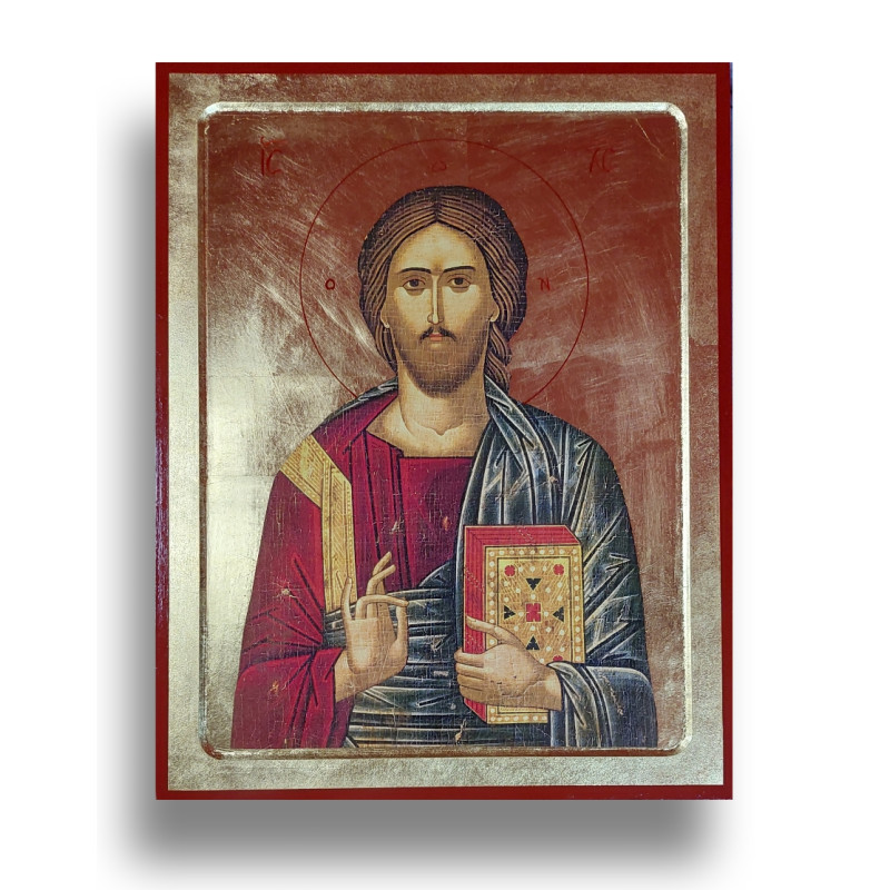 Tato ikona vyobrazuje Krista Žehnajícího, což je podobenství jeho milosti a lásky k lidem. Dílo je inspirované byzantským uměním z posvátného hory Athos, což je centrum pravoslavné spirituality. Na ikoně je Pán Ježíš Kristus znázorněn s pravou rukou ve gestu požehnání a v levé drží otevřenou knihu, symbol jeho učení a novozákonního zjevení. Vyrobeno v Řecku s důrazem na autenticitu a tradiční ikonografii, má ikona rozměry 45x35 cm a je na dřevěném podkladu s pozlacením, které zvýrazňuje její duchovní aura. Vyřezaný rám dodává ikoně sofistikovaný a elegantní vzhled, zatímco ouško na zadní straně usnadňuje její pověšení.