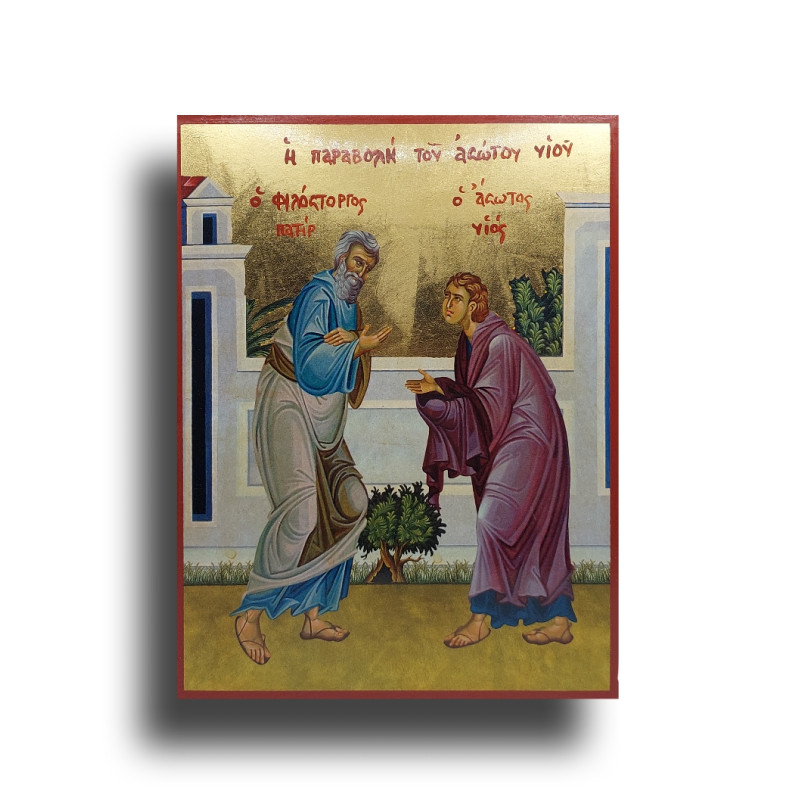 Na ikoně je Kristovo podobenství, ve kterém vysvětluje, že Bůh má větší radost z obráceného hříšníka než ze spravedlivého, který nevidí svou vnitřní nahotu.
