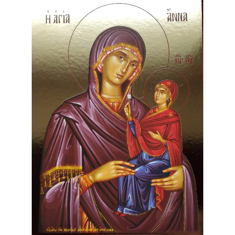 Na ikoně se nachází sv. Anna, matka Panny Marie, která drží v náručí Pannu Marii.