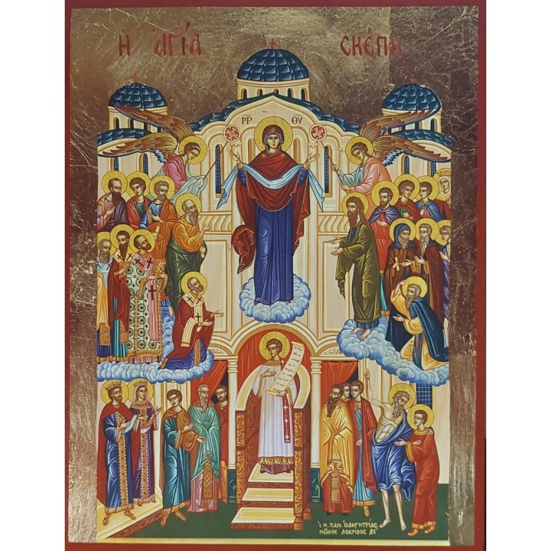 K tomuto zázračnému zjevení Matky Boží došlo v kostele Blachernae v Konstantinopoli v polovině desátého století. V neděli 1. října, ve čtyři hodiny ráno se nad lidem zjevila Nejsvětější Panna Maria, držela svůj plášť natažený jako ochranný kryt nad věřícími. Byla oblečena do purpurové barvy pokryté zlatem a zářila nevýslovným jasem, obklopená apoštoly, světci, mučedníky a pannami.