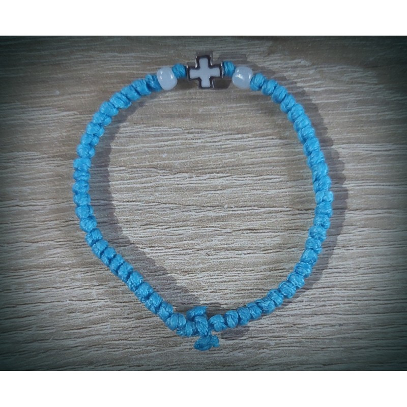 Ručně pletený modlitební náramek z řeckého kláštera (60 uzlíků). Vyrobeno z tenké voskované bavlněné nitě a se dvěma korálky a křížem. Ačkoli se náramek zdá na první pohled malý, díky navoskované niti se lehce protáhne přes zápěstí. Náramek má připomínat, že nedílnou součástí křesťanského života je modlitba i skutek.