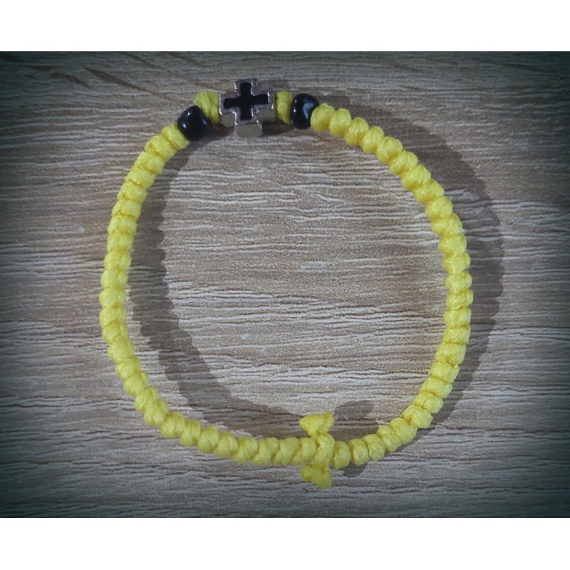 Ručně pletený modlitební náramek z řeckého kláštera (60 uzlíků). Vyrobeno z tenké voskované bavlněné nitě a se dvěma korálky a křížem. Ačkoli se náramek zdá na první pohled malý, díky navoskované niti se lehce protáhne přes zápěstí. Náramek má připomínat, že nedílnou součástí křesťanského života je modlitba i skutek.