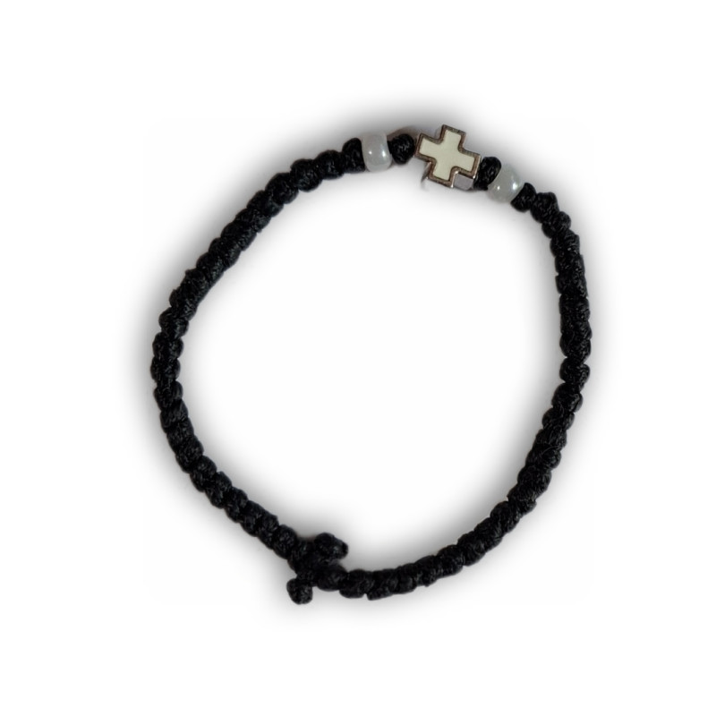 Ručně pletený modlitební náramek z řeckého kláštera (60 uzlíků). Vyrobeno z tenké voskované bavlněné nitě a se dvěma korálky a křížem. Ačkoli se náramek zdá na první pohled malý, díky navoskované niti se lehce protáhne přes zápěstí. Náramek má připomínat, že nedílnou součástí křesťanského života je modlitba i skutek.