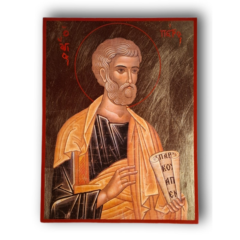 Ikona svatého Petra, jednoho z dvanácti apoštolů, „skály“ Kristovy církve a prvního biskupa Říma. Byzantské provedení s charakteristickými znaky jeho apoštolské autority.