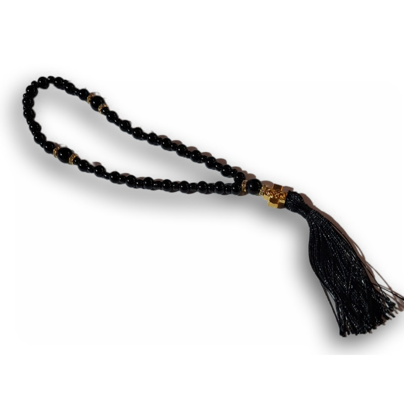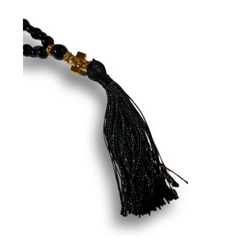 Tento nádherný modlitební růženec pochází přímo z Řecka – země hluboce prostoupené vírou a tradicí. Vyrobený s láskou a úctou k modlitbě, spojuje elegantní černé korálky, zlaté akcenty a jemný střapec v harmonický celek.
