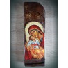 Ikonografie Panny Marie Ochranitelky se liší od tradičního zobrazení Panny Marie, protože zobrazuje Marii, jak drží na svých rukou oblečeného Ježíše, který vypadá jako malý dospělý.